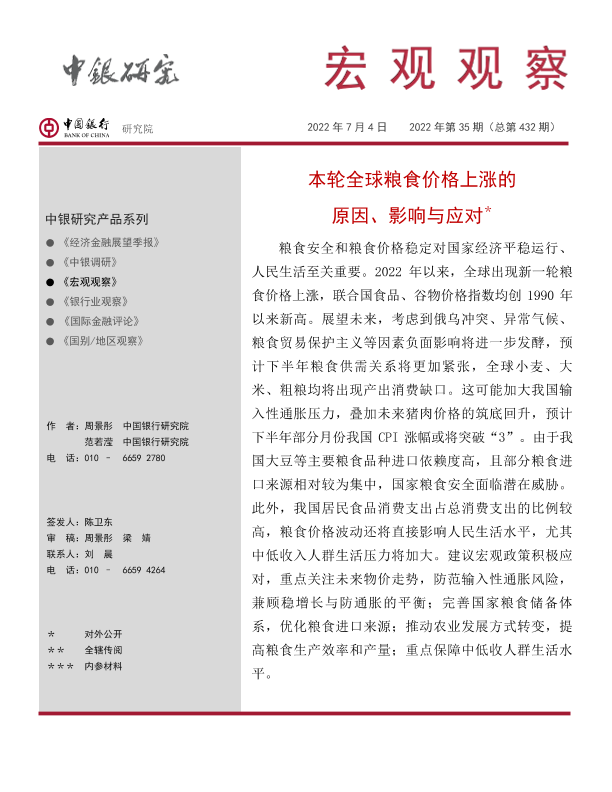 【中国银行研究院】【20220704】本轮全球粮食价格上涨的原因、影响与应对-21页