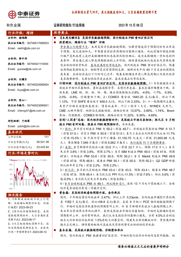 【中泰证券】【20231008】全球制造业景气回升,美元指数波动加大,大宗金属配置逻辑不变-32页