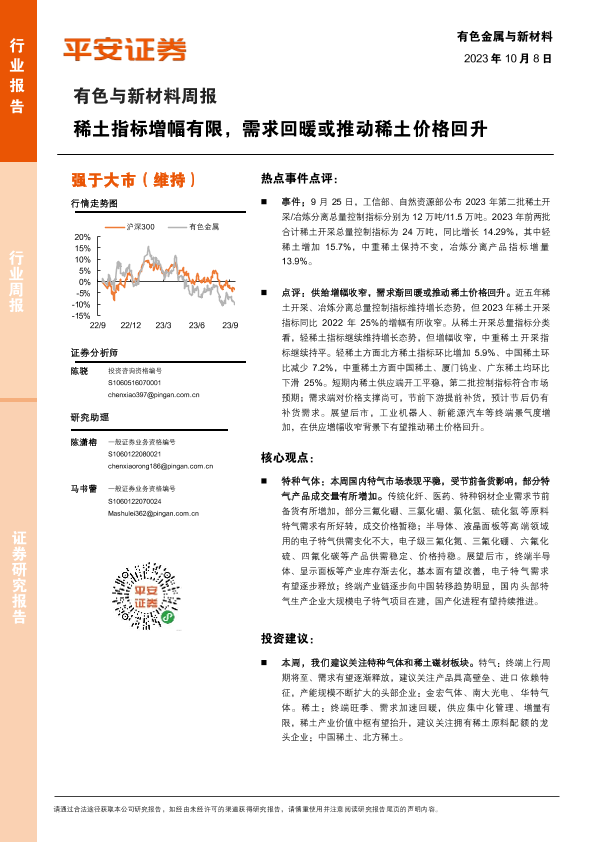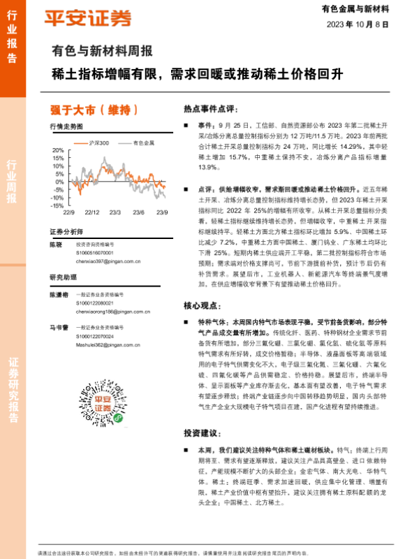【平安证券】【20231008】20231008-平安证券-有色与新材料周报:稀土指标增幅有限,需求回暖或推动稀土价格回升-17页