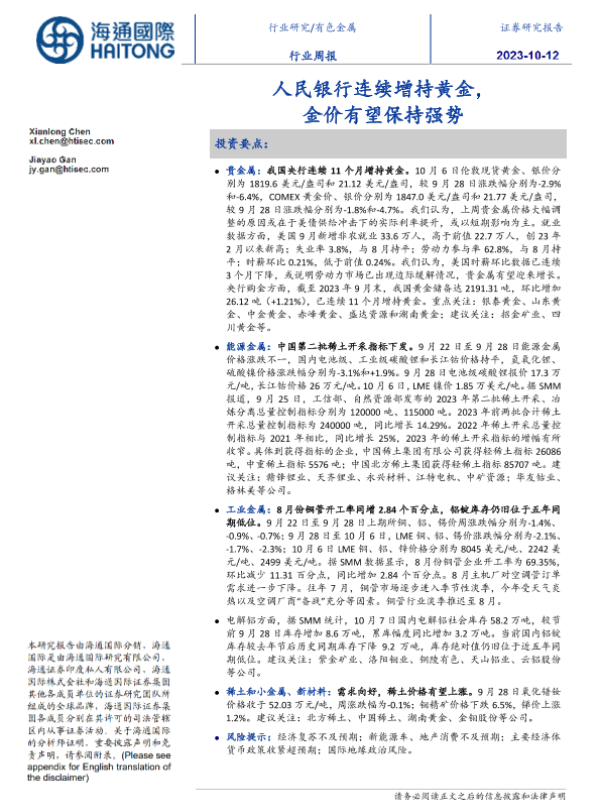 【海通国际】【20231012】人民银行连续增持黄金,金价有望保持强势-21页