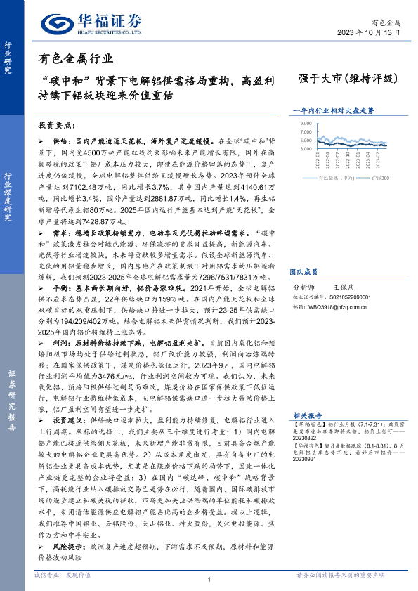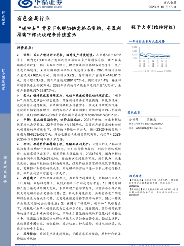 【华福证券】【20231013】“碳中和”背景下电解铝供需格局重构,高盈利持续下铝板块迎来价值重估-44页