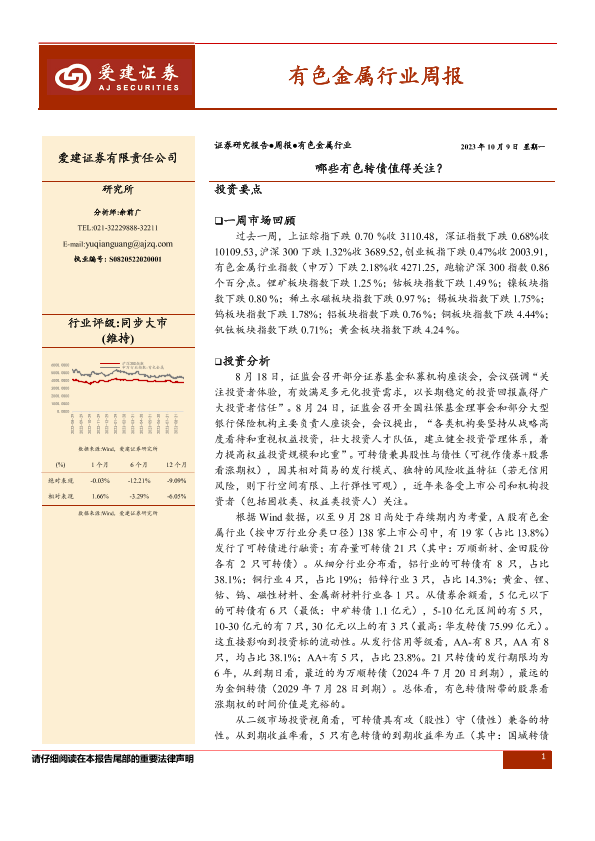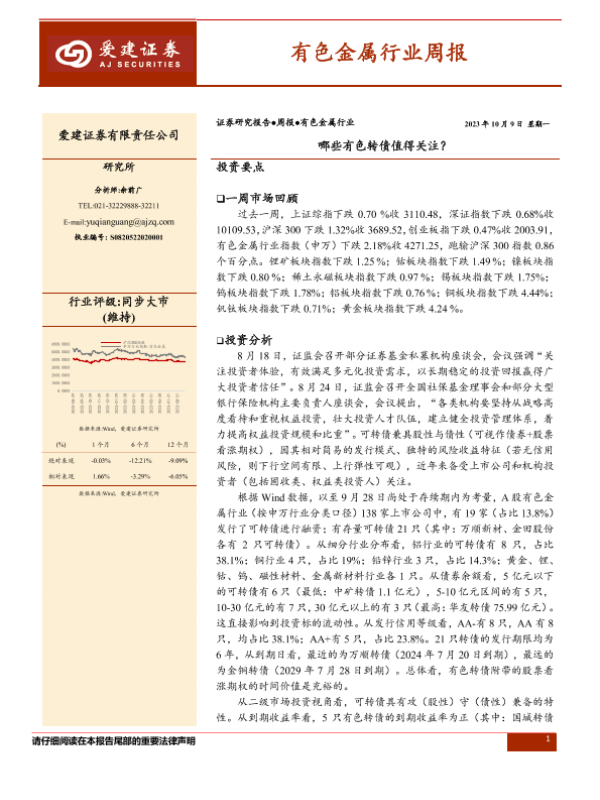 【爱建证券】【20231009】20231009-爱建证券-有色金属行业周报:哪些有色转债值得关注?-35页