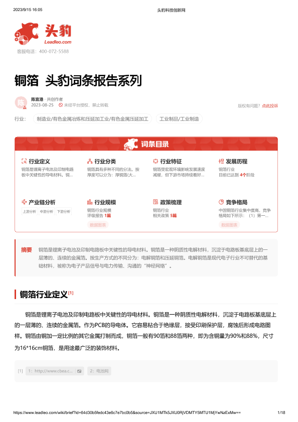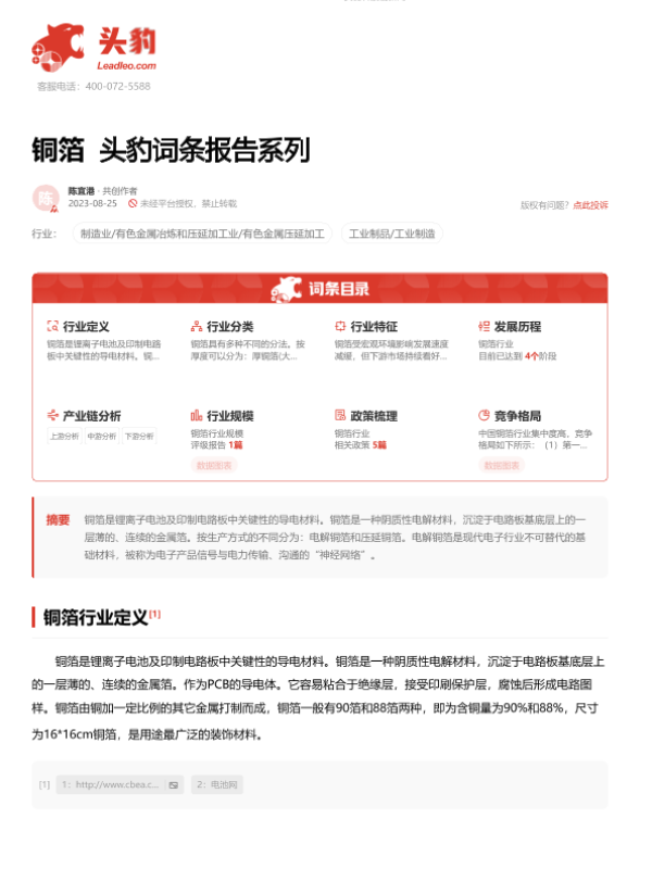 【头豹研究院】【20231020】铜箔 头豹词条报告系列-18页