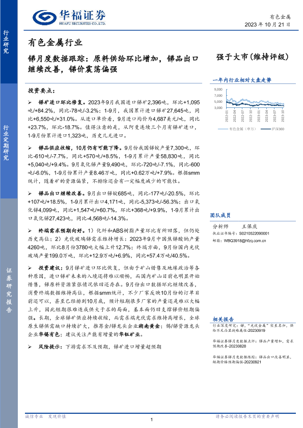 【华福证券】【20231021】锑月度数据跟踪:原料供给环比增加,锑品出口继续改善,锑价震荡偏强-11页