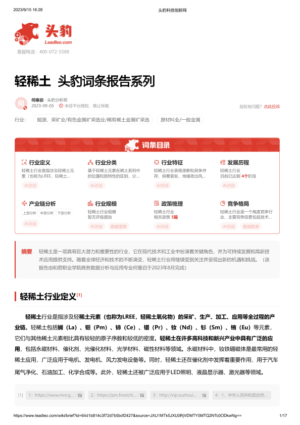 【头豹研究院】【202309】轻稀土 头豹词条报告系列-17页