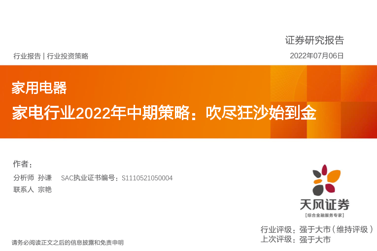 【天风证券】【20220706】家电行业2022年中期策略:吹尽狂沙始到金-36页