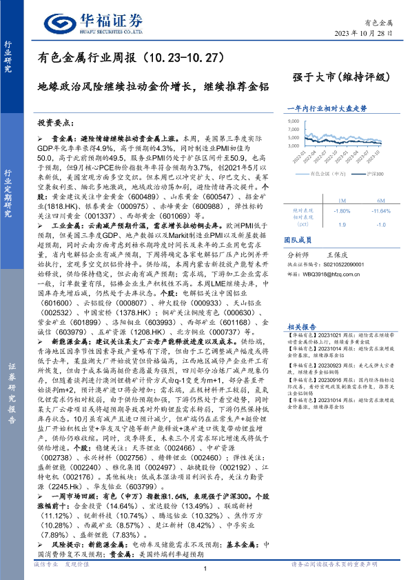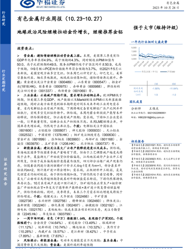 【华福证券】【20231028】20231028-华福证券-有色金属行业周报:地缘政治风险继续拉动金价增长,继续推荐金铝-16页