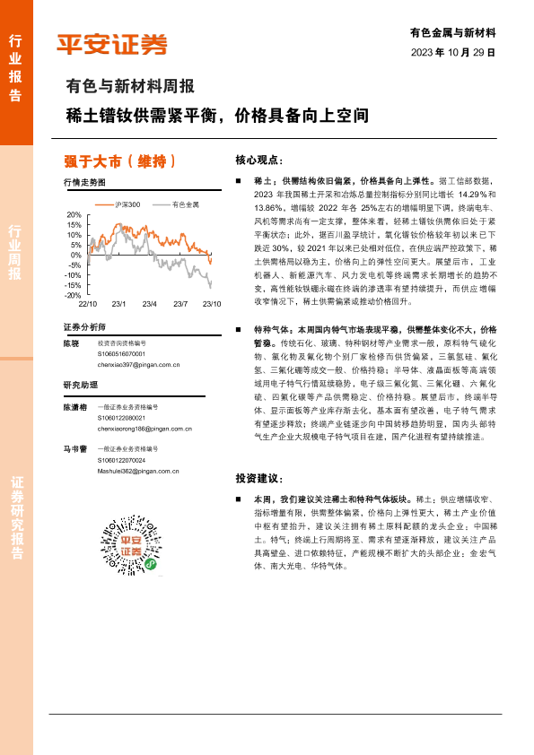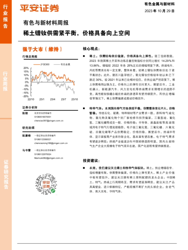 【平安证券】【20231029】20231029-平安证券-有色与新材料周报:稀土镨钕供需紧平衡,价格具备向上空间-17页