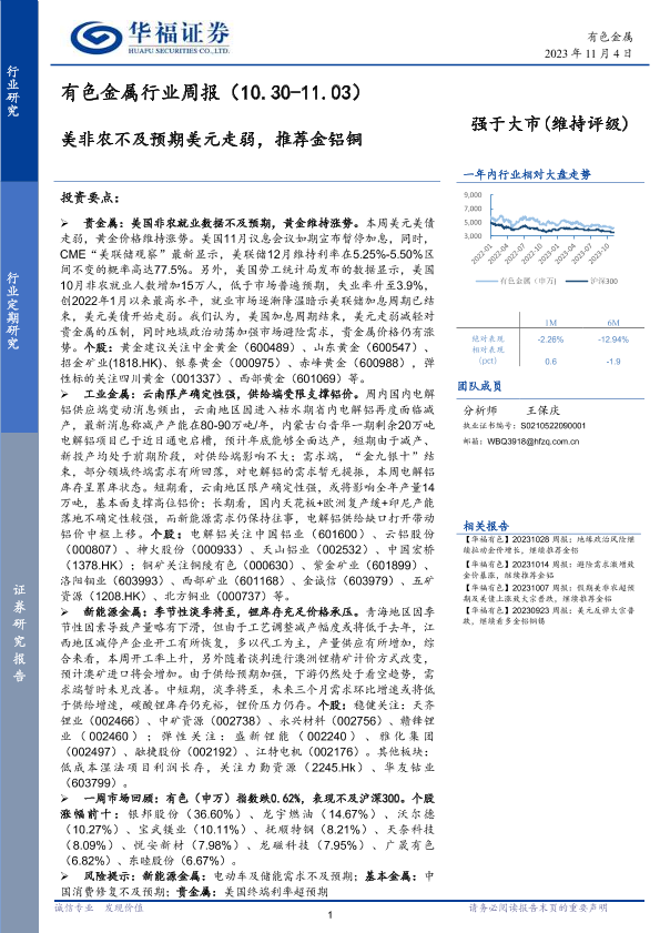 【华福证券】【20231104】20231104-华福证券-有色金属行业周报:美非农不及预期美元走弱,推荐金铝铜-15页