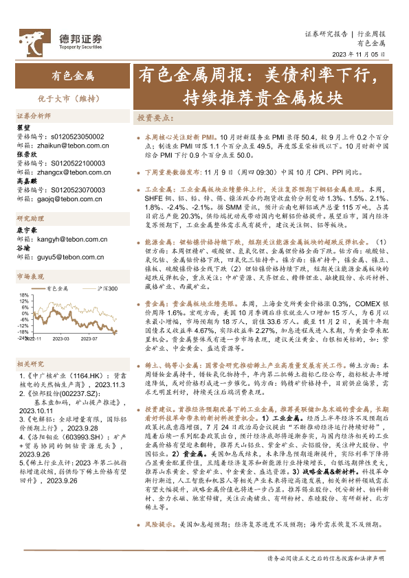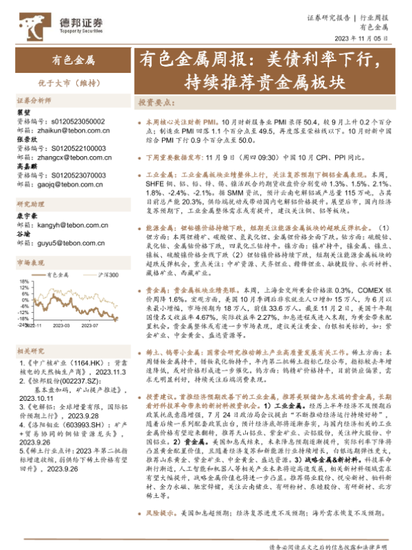 【德邦证券】【20231105】20231105-德邦证券-有色金属周报:美债利率下行,持续推荐贵金属板块-25页