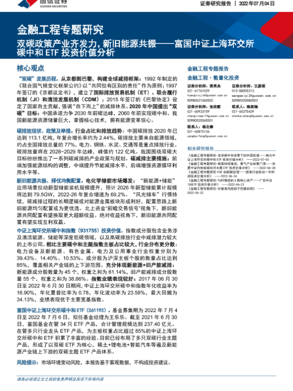 【国信证券】【20220704】富国中证上海环交所碳中和ETF投资价值分析:双碳政策产业齐发力,新旧能源共振-20页