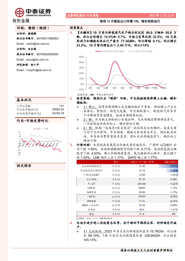 【中泰证券】【20231112】20231112-中泰证券-有色金属行业周报:智利10月锂盐出口环增74%,锂价弱势运行-22页