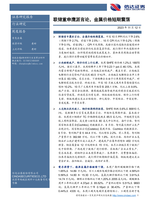 【信达证券】【20231112】联储重申鹰派言论,金属价格短期震荡-12页