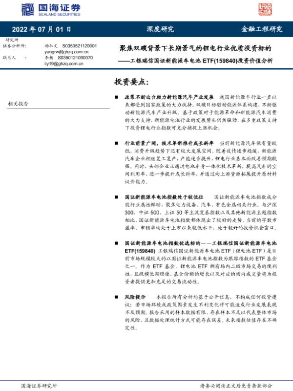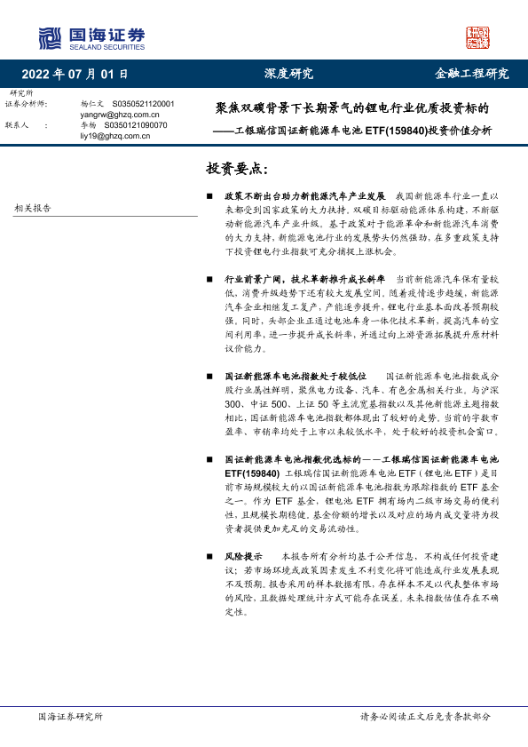 【国海证券】【20220701】工银瑞信国证新能源车电池ETF(159840)投资价值分析:聚焦双碳背景下长期景气的锂电行业优质投资标的-22页