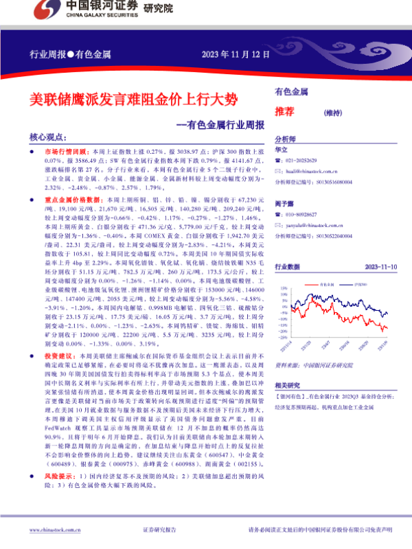 【银河证券】【20231112】中国银河-有色金属行业周报:美联储鹰派发言难阻金价上行大势-19页