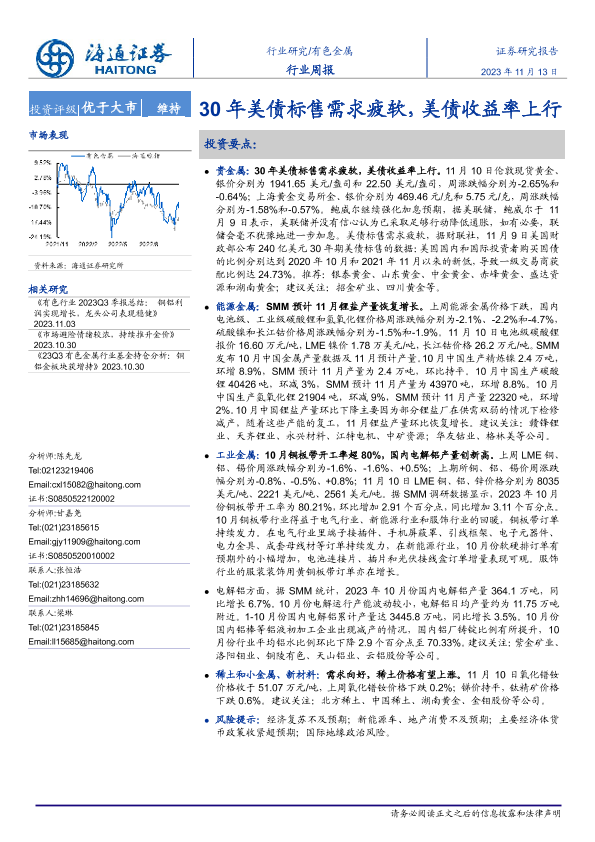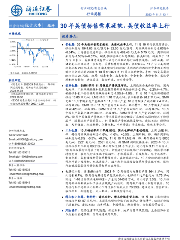 【海通证券】【20231113】20231113-海通证券-有色金属行业周报:30年美债标售需求疲软,美债收益率上行-14页