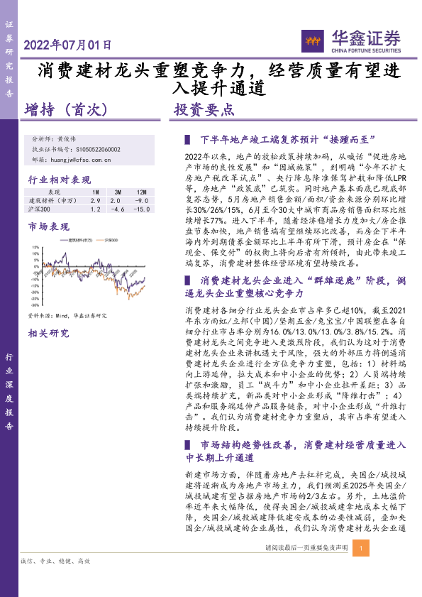 【华鑫证券】【20220701】建材行业:消费建材龙头重塑竞争力,经营质量有望进入提升通道-20页