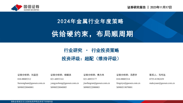 【国信证券】【20231117】2024年金属行业年度策略:供给硬约束,布局顺周期-80页