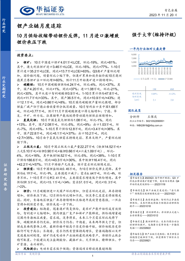 【华福证券】【20231120】20231120-华福证券-锂产业链月度追踪:10月供给收缩带动锂价反弹,11月进口激增致锂价承压下跌-19页