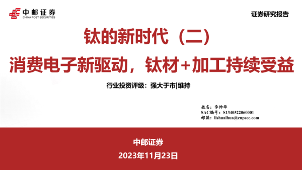 【中邮证券】【20231123】钛的新时代(二):消费电子新驱动,钛材+加工持续受益-28页