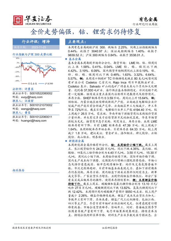 【华安证券】【20231125】20231125-华安证券-有色金属行业周报:金价走势偏强,钴、锂需求仍待修复-15页