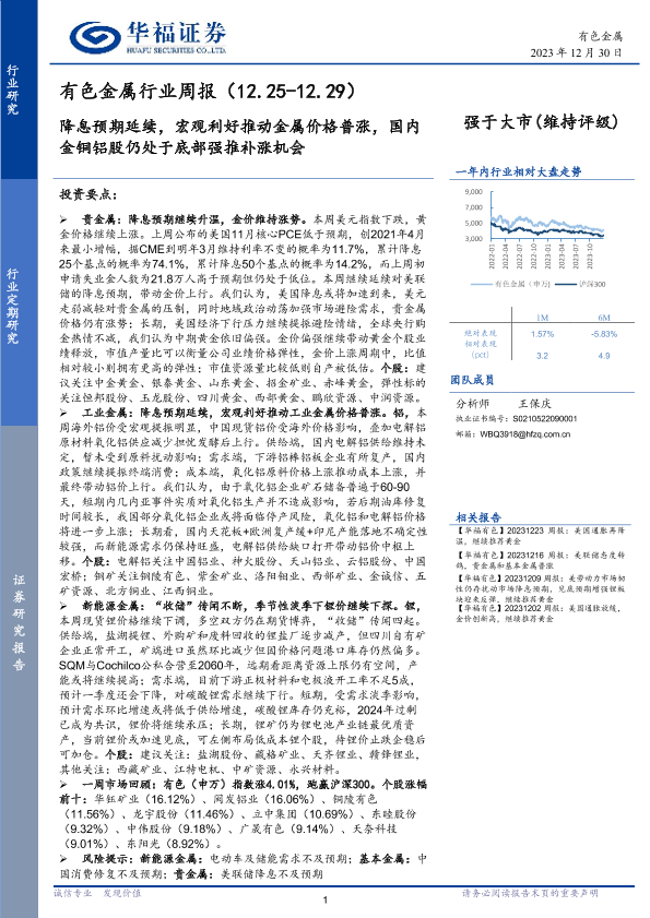 【华福证券】【20231230】20231230-华福证券-有色金属行业周报:降息预期延续,宏观利好推动金属价格普涨,国内金铜铝股仍处于底部强推补涨机会-15页