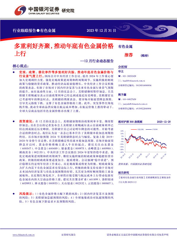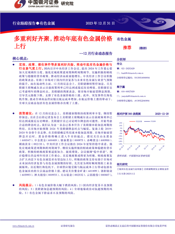 【银河证券】【20231231】20231231-中国银河-有色金属12月行业动态报告:多重利好齐聚,推动年底有色金属价格上行-26页