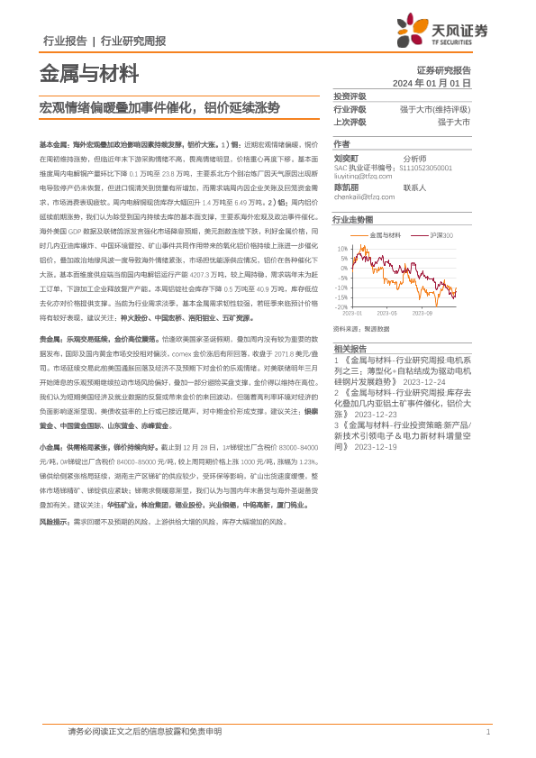 【天风证券】【20240101】金属与材料行业研究周报:宏观情绪偏暖叠加事件催化,铝价延续涨势-17页