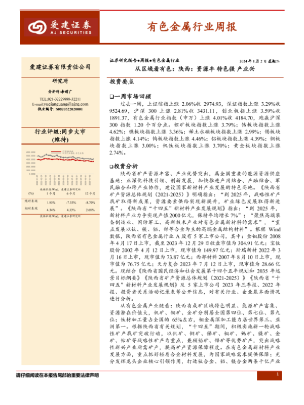 【爱建证券】【20240102】20240102-爱建证券-有色金属行业周报:从区域看有色:陕西:资源丰特色强产业兴-32页