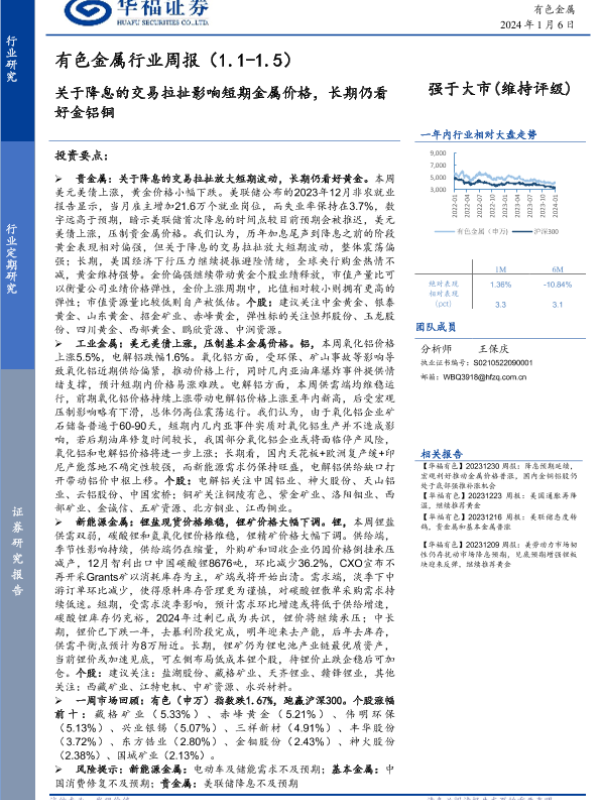 【华福证券】【20240106】20240106-华福证券-有色金属行业周报:关于降息的交易拉扯影响短期金属价格,长期仍看好金铝铜-15页