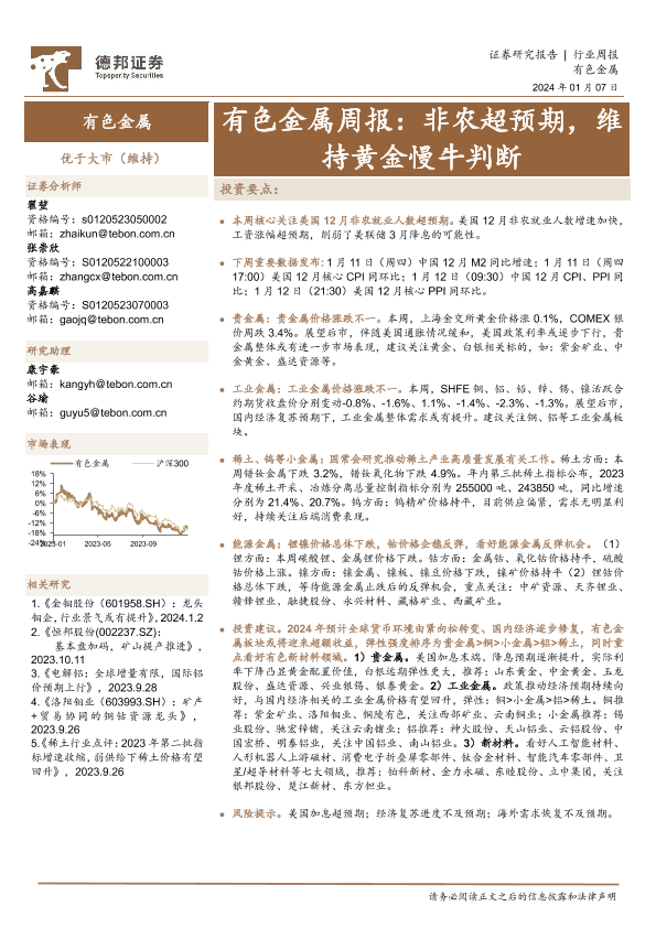 【德邦证券】【20240107】20240107-德邦证券-有色金属周报:非农超预期,维持黄金慢牛判断-25页