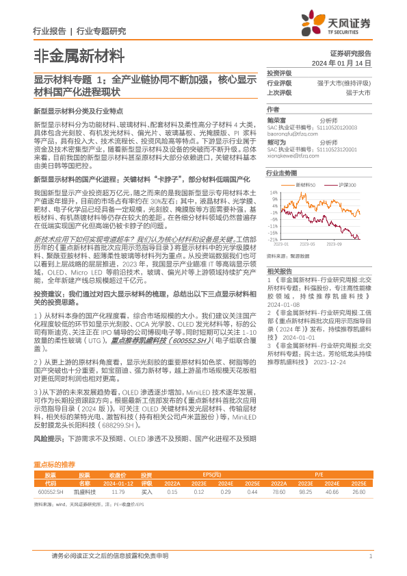 【天风证券】【20240114】20240114-天风证券-显示材料专题1:全产业链协同不断加强,核心显示材料国产化进程现状-21页