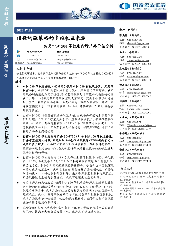 【国泰君安证券】【20220701】指数增强策略的多维收益来源——招商中证500等权重指增产品价值分析-26页