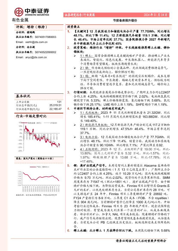 【中泰证券】【20240114】20240114-中泰证券-有色金属行业周报:节前备库推升锑价-22页
