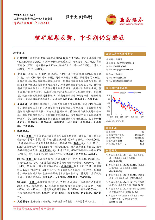 【西南证券】【20240114】20240114-西南证券-有色行业周报:锂矿短期反弹,中长期仍需磨底-21页
