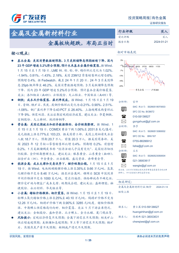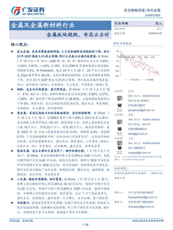 【广发证券】【20240121】20240121-广发证券-金属及金属新材料行业投资策略周报:金属板块超跌,布局正当时-25页