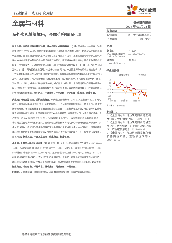 【天风证券】【20240121】20240121-天风证券-金属与材料行业研究周报:海外宏观情绪施压,金属价格有所回调-16页