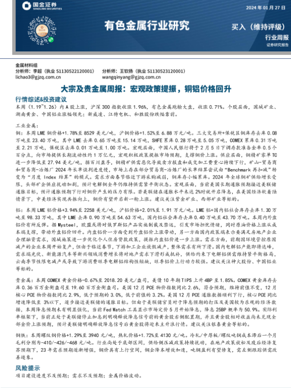 【国金证券】【20240127】20240127-国金证券-大宗及贵金属周报:宏观政策提振,铜铝价格回升-14页
