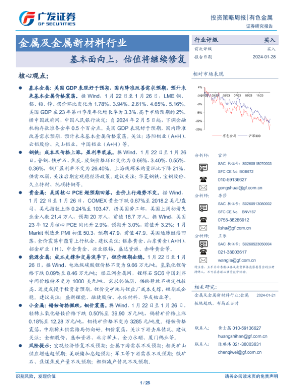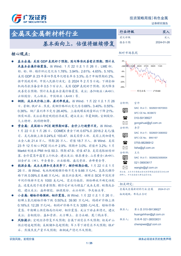 【广发证券】【20240128】20240128-广发证券-金属及金属新材料行业投资策略周报:基本面向上,估值将继续修复-25页
