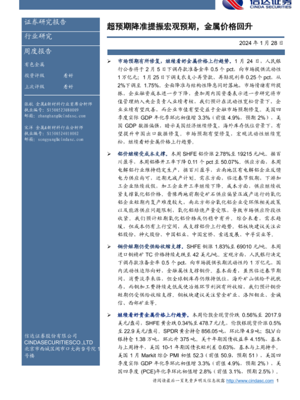 【信达证券】【20240128】20240128-信达证券-有色金属周度报告:超预期降准提振宏观预期,金属价格回升-10页