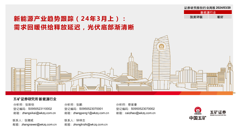 【五矿证券】【20240320】新能源产业趋势跟踪(24年3月上):需求回暖供给释放延迟,光伏底部渐清晰-51页