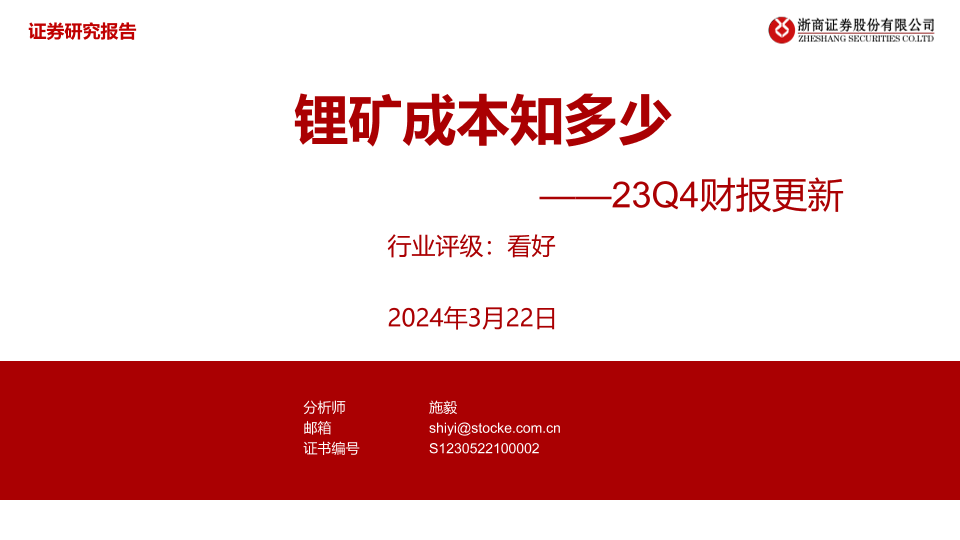【浙商证券】【20240322】20240322-浙商证券-有色金属23Q4财报更新:锂矿成本知多少-13页