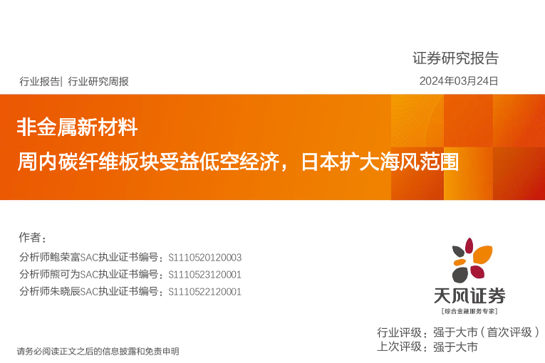 【天风证券】【20240324】非金属新材料:周内碳纤维板块受益低空经济,日本扩大海风范围-20页