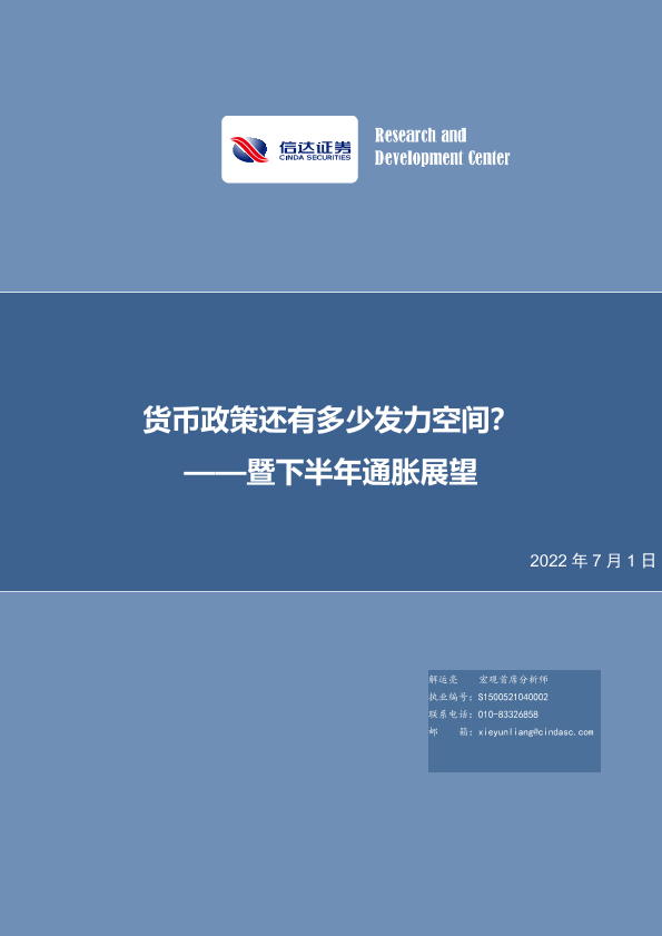 【信达证券】【20220701】货币政策还有多少发力空间?——暨下半年通胀展望-30页