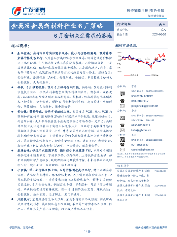 【广发证券】【20240602】金属及金属新材料行业6月策略:6月密切关注需求的落地-26页