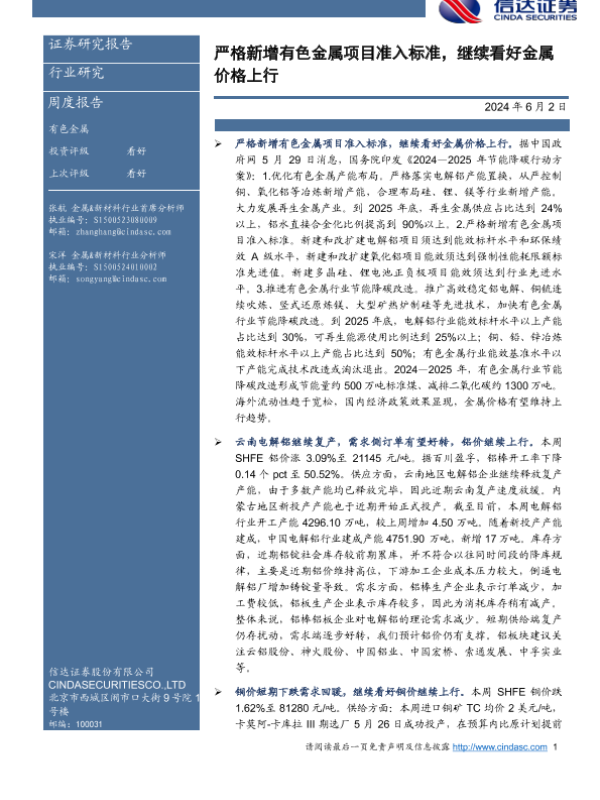 【信达证券】【20240602】严格新增有色金属项目准入标准,继续看好金属价格上行-12页