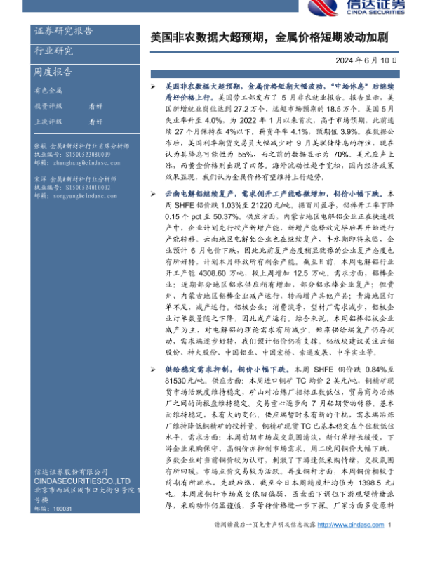 【信达证券】【20240610】美国非农数据大超预期,金属价格短期波动加剧-11页