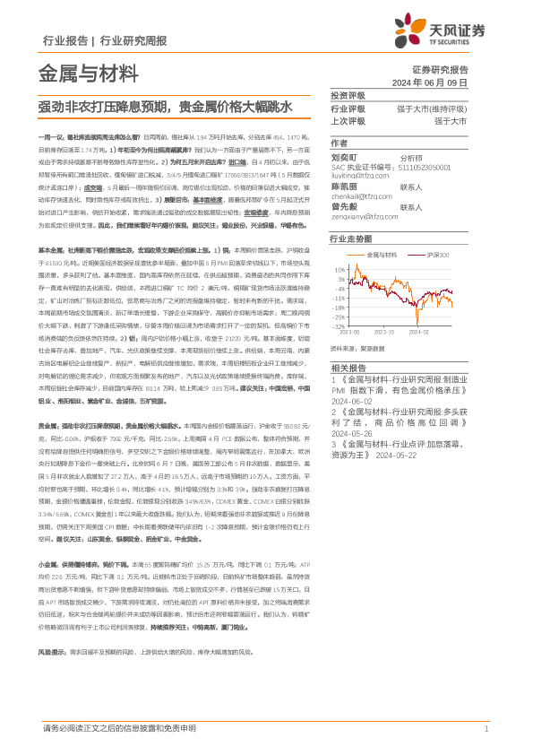 【天风证券】【20240609】金属与材料行业研究周报:强劲非农打压降息预期,贵金属价格大幅跳水-17页