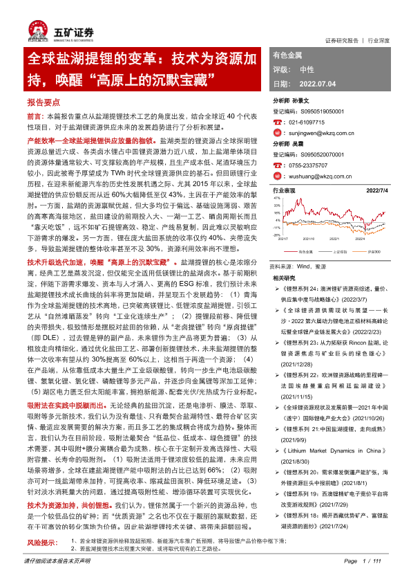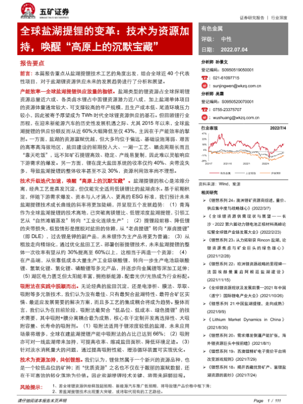 【五矿证券】【20220704】全球盐湖提锂的变革:技术为资源加持,唤醒“高原上的沉默宝藏”-111页