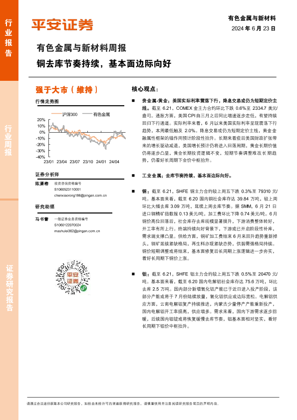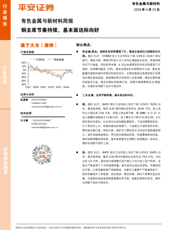 【平安证券】【20240623】20240623-平安证券-有色金属与新材料周报:铜去库节奏持续,基本面边际向好-12页